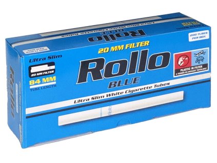 Dutinky ROLLO Ultra Slim Blue 200 jsou fantastické bílé lehké slim dutinky o průměru 6,5mm, s extra dlouhým filtrem úctyhodných 25mm, díky kterým mimo jiné ušetříte až 30% tabáku.